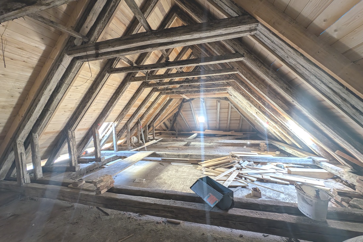 Aufgrund des Bedarfs an zusätzlichem Wohnraum wurde ein 8x4x4m großer Holzkubus an das Bestandsgebäude angebaut.